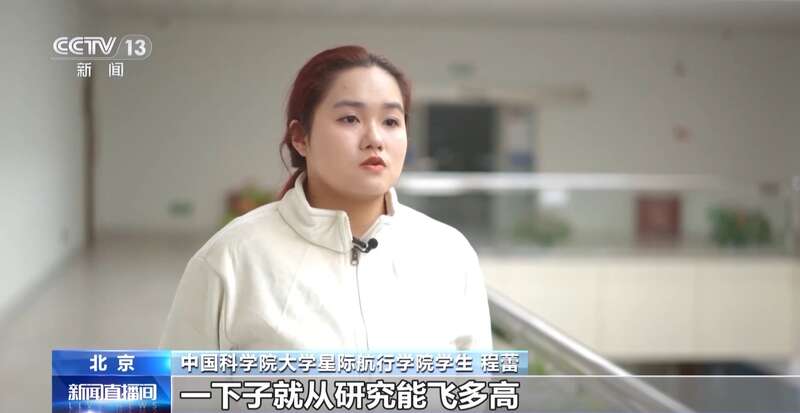 中国科学院大学星际航行学院学生程蕾:感觉我们的视野一下子就从研究能飞多高,变成了我们要飞向多远。我们之前更多是研究地月方面的工程,未来我们要更多地探索未知的宇宙,有可能是扩展到太阳系甚至更长远的深空探索。